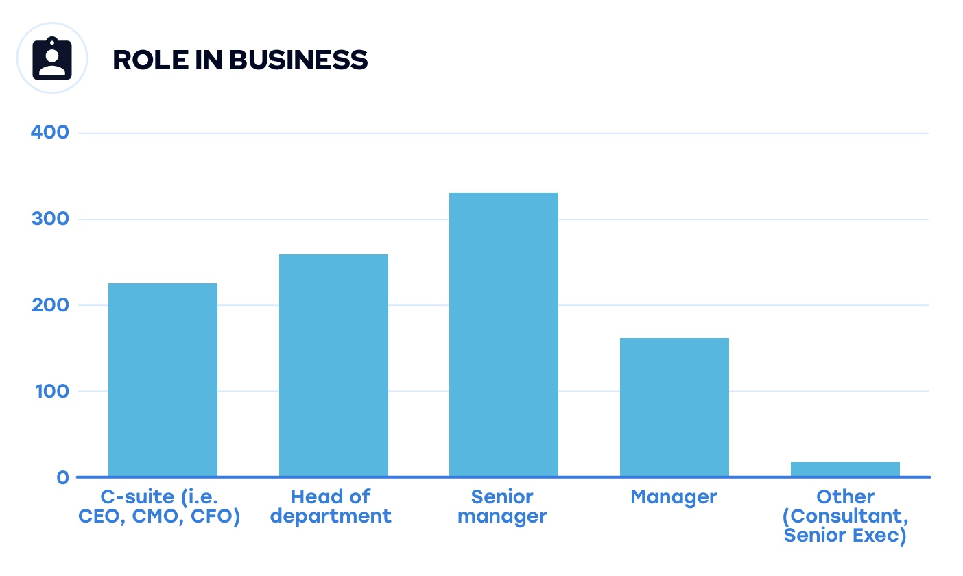 We gathered responses from a mix of levels, from middle management to C-Level executives, across various industries, including automotive, FMCG, fashion, professional services and more.